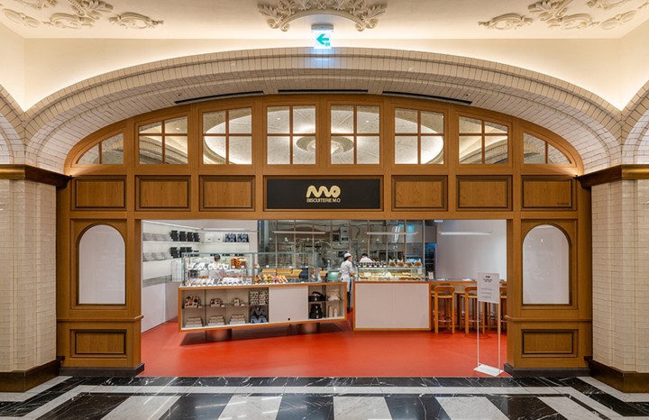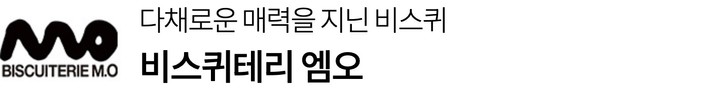 ‘비스퀴테리(Biscuiterie)’란 구움과자,쿠키,파운드 케이크 등 모든 종류의 반죽을 의미하는 ‘비스퀴'를 만드는 곳이라는 뜻이에요. 비스퀴테리 엠오는 높은 수준의 파티스리로 사랑받는 메종엠오의 세컨드 브랜드입니다. 삶의 여러 장면에서 소중한 사람과 함께 나누는 과자로 기억되기를 바라며,다양한 종류의 비스퀴를 소개하죠. 수묵화를 연상시키는 로고는 정통 프렌치 디저트에 동양적 철학을 더하고자 하는 비스퀴테리 엠오만의 개성을 의미한답니다.