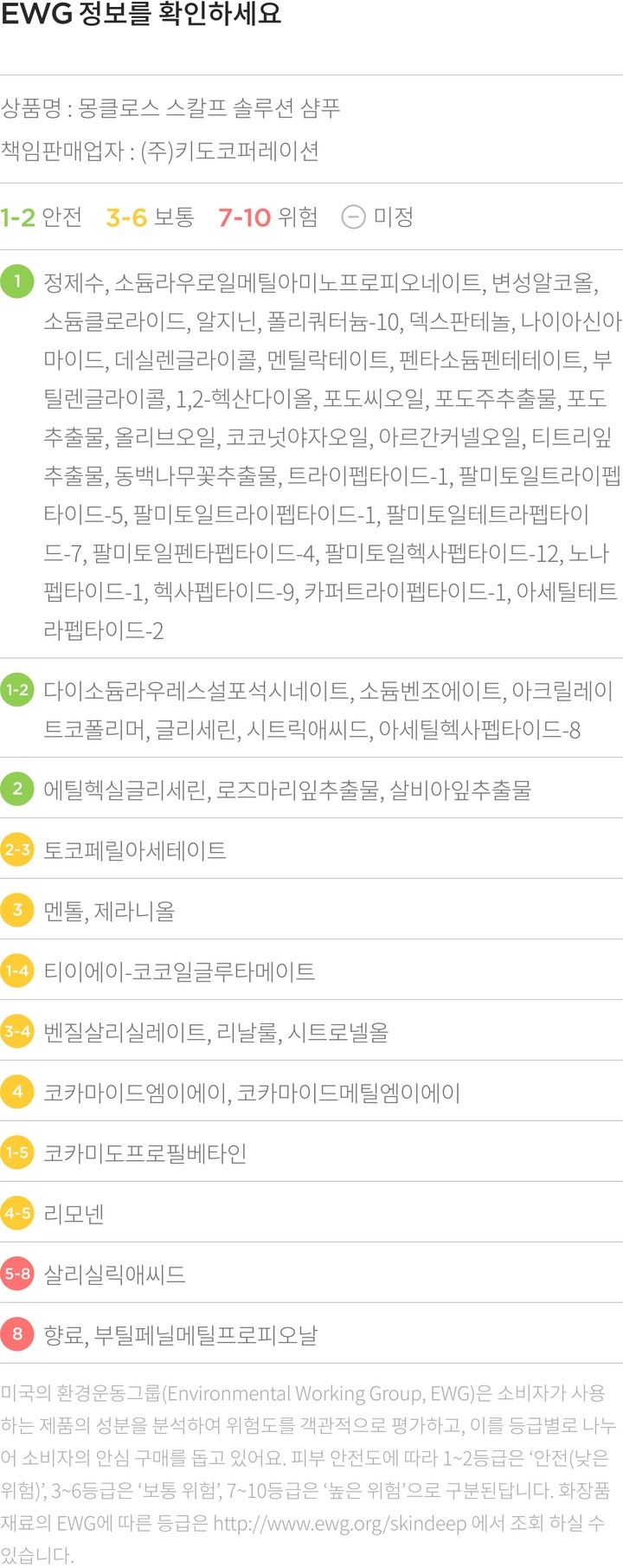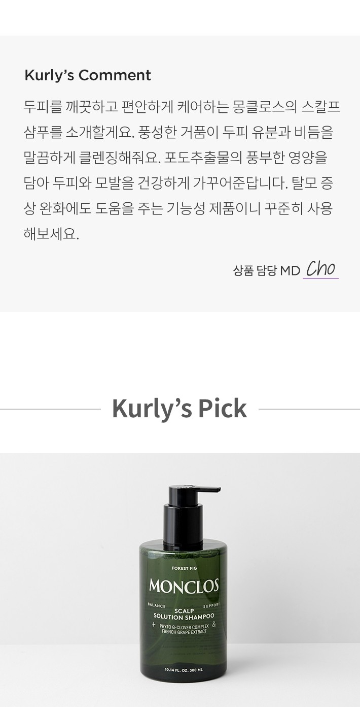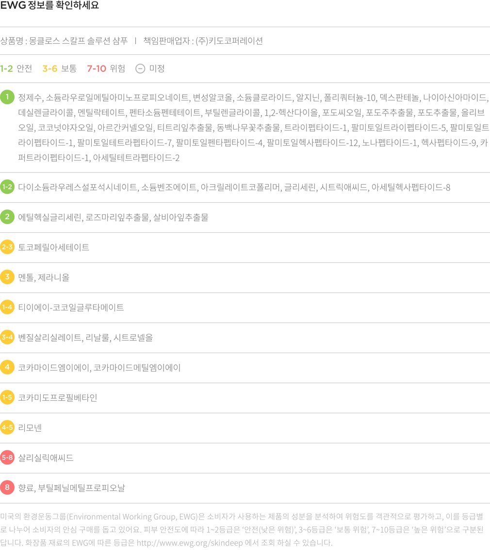・ 특징:두피 유분과 비듬을 깨끗하게 케어하는 샴푸입니다. 탈모 증상 완화에 도움을 주는 기능성 제품이에요.