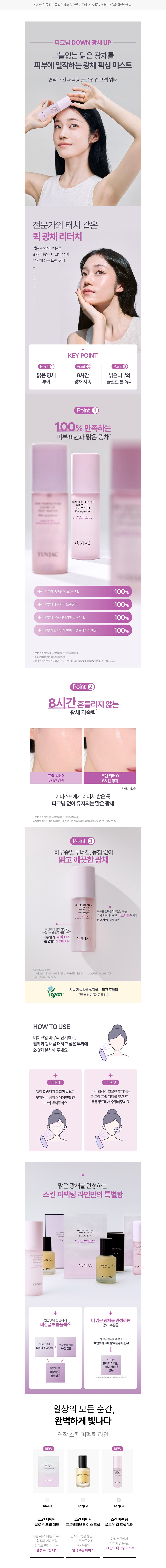 - 특징:피부에 가볍게 뿌려 광택감을 더하고 베이스 메이크업의 밀착력과 지속력을 높이는 광채 픽싱 미스트