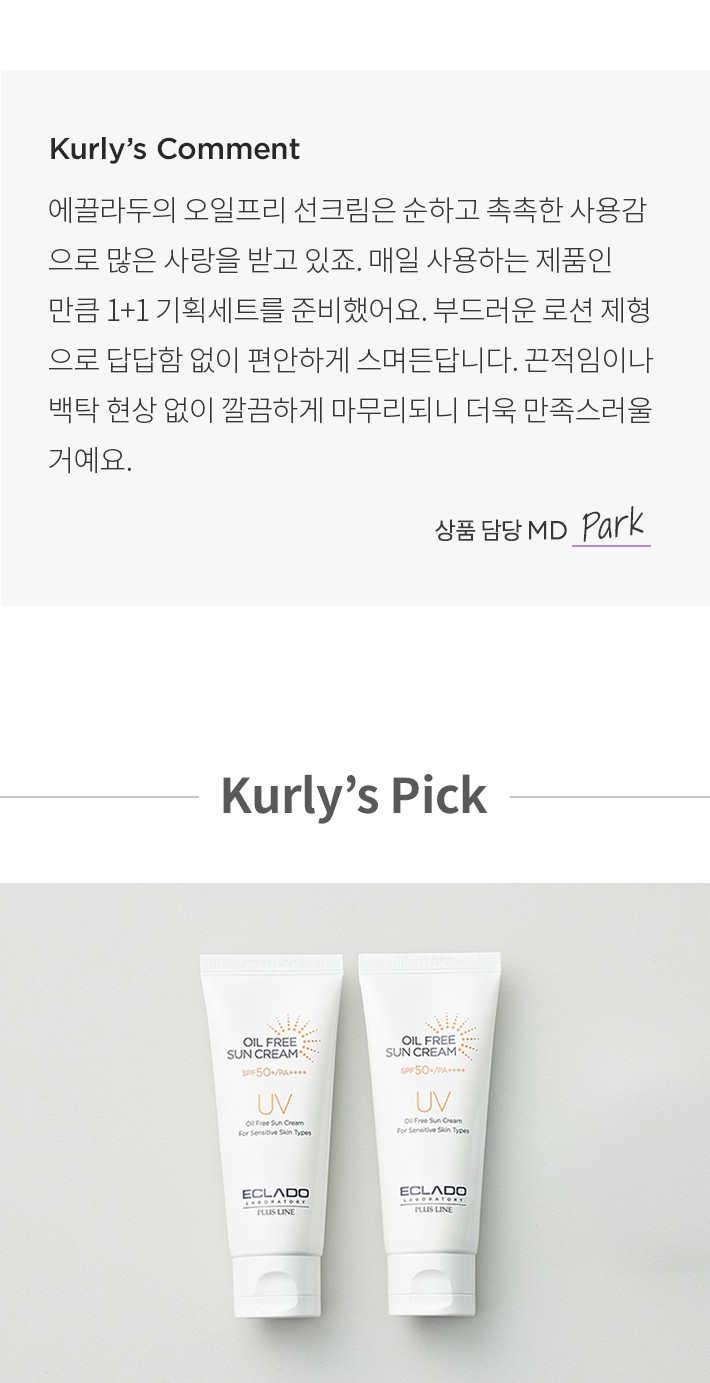 UV 오일프리 선크림 1+1 기획세트・ 개수:1세트(70g X 2개)