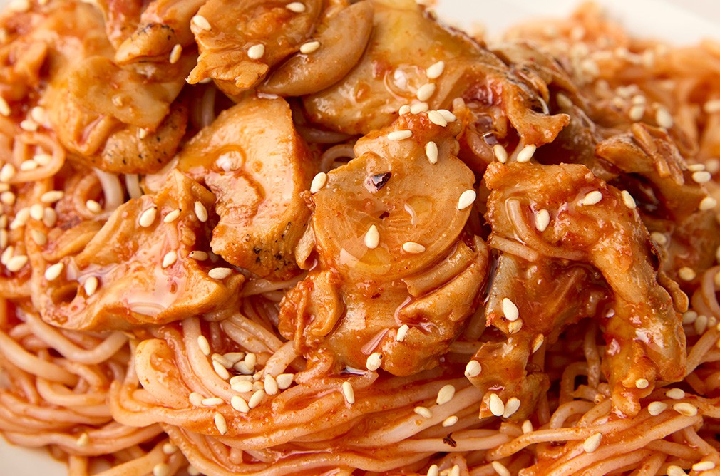 - 특징:쫄깃한 골뱅이를 가득 올린 매콤한 비빔면