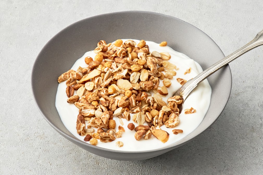스테비아와 알룰로스를 사용해 부담 없는 달콤함을 더한 그래놀라예요. 100g당 단백질 21g을 함유하고 있어 더욱 든든하네요!