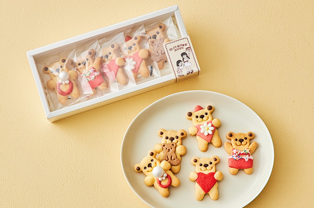 귀엽고 깜찍한 과자로 사랑받는 과자점,언니가 숨겨놓은 과자상자의 러브베어 쿠키세트를 만나보세요. 프랑스산 밀가루에 아몬드 가루,무염버터 등을 섞어 고소한 맛을 살렸어요. 반지,꽃,인형,케이크 등 각양각색의 오브제를 들고 있는 곰돌이가 눈길을 사로잡죠. 개별 포장하여 박스에 담아 보내드리니,소풍용 간식이나 센스 있는 선물로 추천할게요.