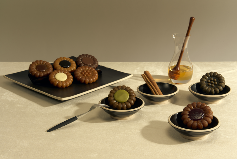 - 특징:은은한 녹차 향이 나는 초콜릿 가나슈를 올려 만든 약과