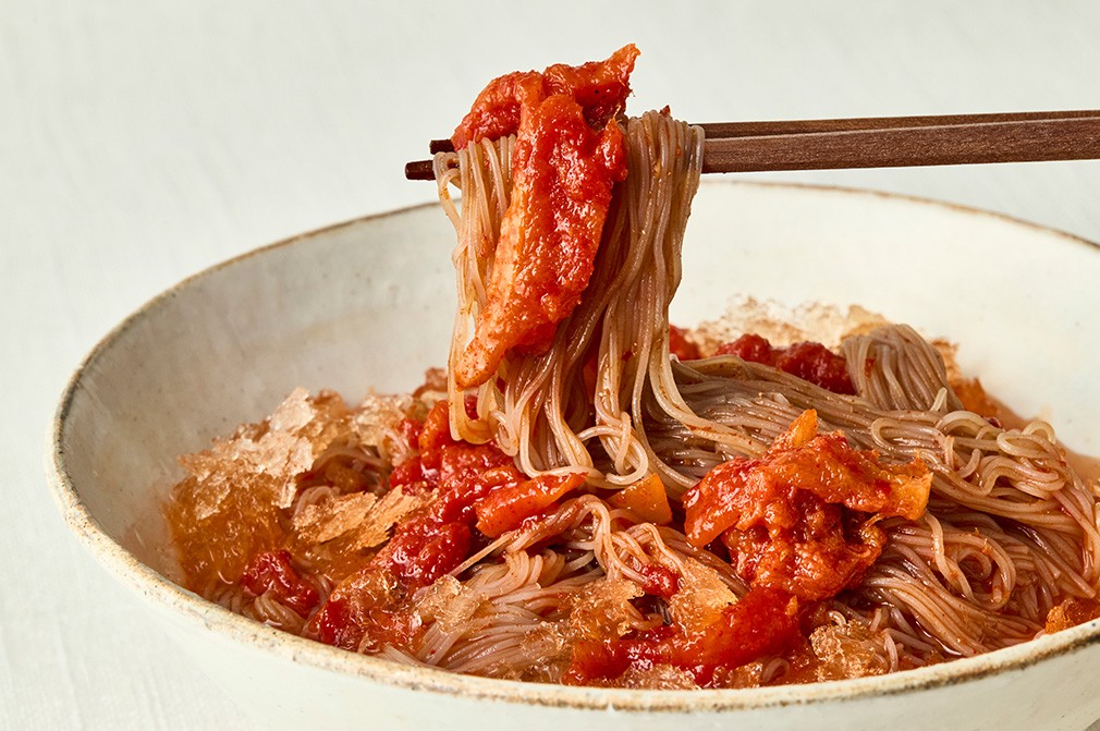 MD L이름 그대로 명태회무침을 듬뿍 담은 회냉면을 준비했어요. 72시간 저온 숙성해 쫄깃하게 씹는 맛을 제대로 살렸답니다.