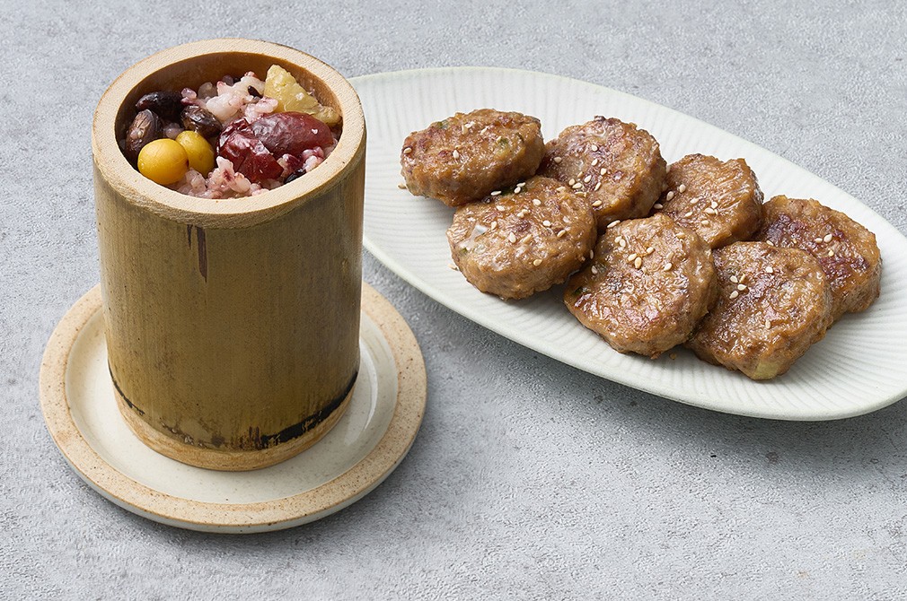 - 노릇하게 구운 떡갈비를 곁들여 보세요. 향긋한 대나무 통밥과 짭조름한 떡갈비가 무척이나 잘 어울린답니다.
