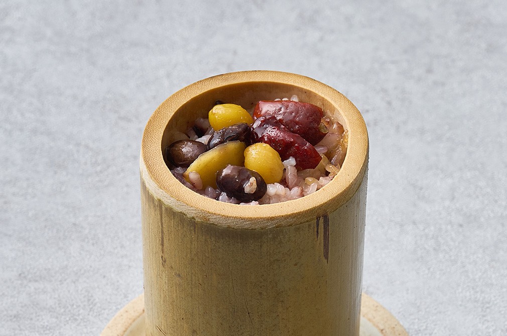 - 대나무 통 속에 밥을 넣고 지었어요. 근사한 비주얼은 물론,밥 속까지 대나무향이 은은하게 배어들었답니다.