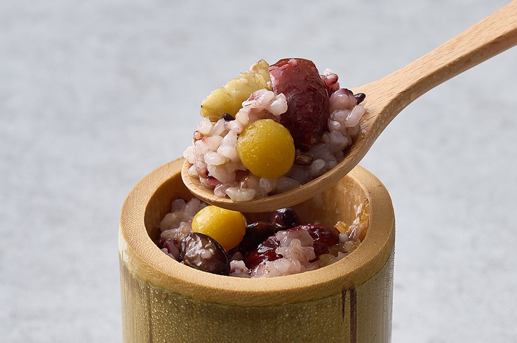 - 맵쌀과 찹쌀,흑미,찰수수는 물론,은행과 밤,대추까지 고명이 알차게 들어갔어요. 풍성한 맛과 식감을 즐길 수 있답니다.