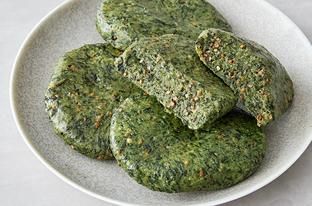 통 들깨가 톡톡 씹힐 때마다 고소한 풍미가 진하게 느껴져요. 향긋한 쑥과 정말 잘 어울리네요.