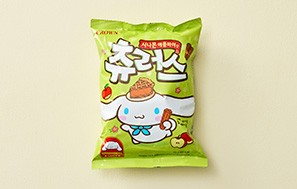 - 특징:시나모롤이 그려진 패키지에 애플파이맛 츄러스를 담은 간식