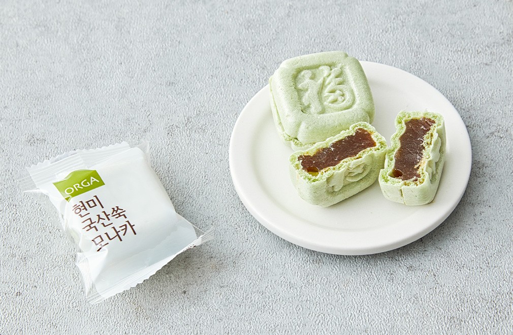 국산 찹쌀과 현미로 만든 찹쌀피 속에 국산 쑥으로 만든 앙금을 채워 완성한 모나카예요. 바삭하면서도 향긋달달한 맛을 즐길 수 있죠. 한입에 쏙 넣을 수 있는 크기로 하나씩 개별 포장했으니 입이 심심할 때 즐겨보세요.