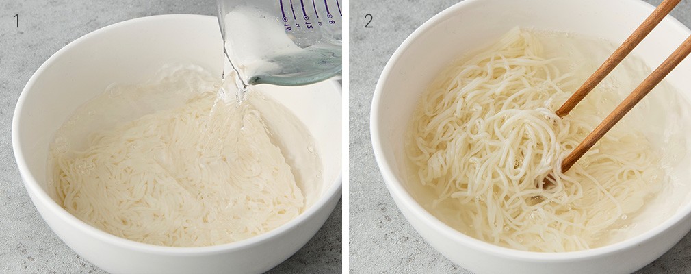 - 3.면을 건져내고 찬물에 3~4회 충분히 헹군 뒤 물기를 제거해 주세요.