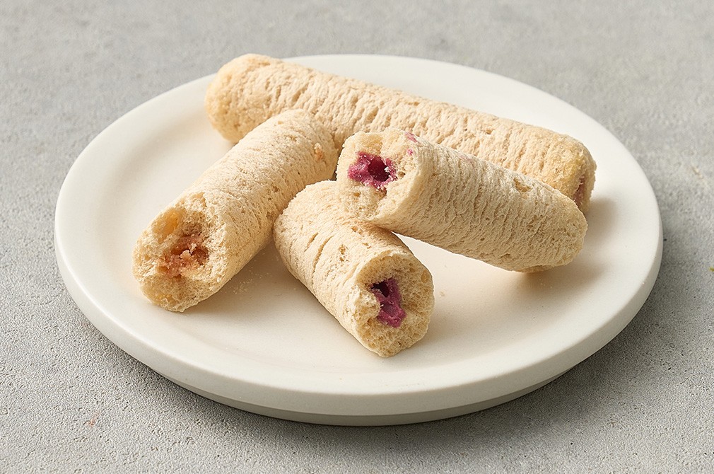 기름에 튀기지 않고 깔끔하게 구워낸 과자예요. 국산 유기농 백미와 현미로 만든 과자에 상큼한 과일 크림을 듬뿍 채웠답니다. 칼슘까지 함유되어 있어 더욱 든든하죠. 1개씩 개별 포장되어 있으니 가방에 쏙 넣어 다니며 아이 간식으로 챙겨 주세요.