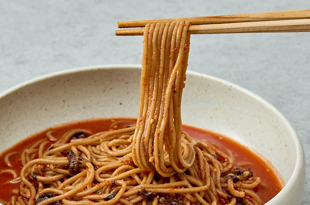 - 특징:쫄깃하고 구수한 도토리 메밀면과 육수,소스,각종 고명까지 함께 구성한 2인분의 비빔 막국수 키트