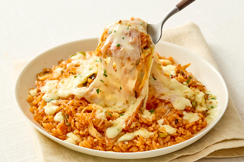 - 모차렐라 치즈를 볶음밥 위에 솔솔 뿌려 드셔보세요. 칼칼한 김치볶음밥과 고소한 치즈의 풍미가 잘 어울려요.