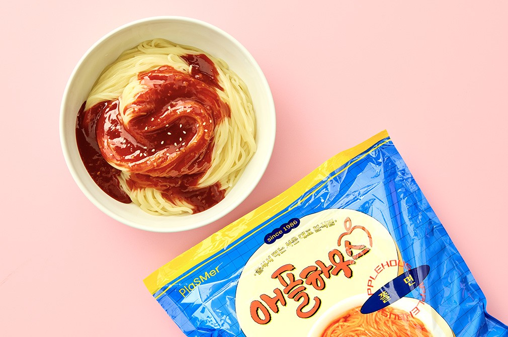 매장에 가면 떡볶이에 사이드 메뉴로 꼭 쫄면을 시켜 먹거든요. 달큰한 맛이 도드라지는 애플하우스 쫄면의 매력을 잘 살렸네요.