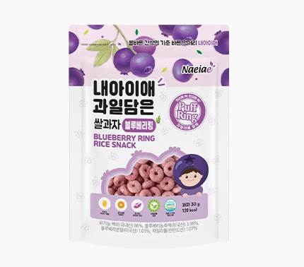 - 특징:국내산 유기농 백미,설탕에 블루베리 농축액과 분말을 섞어 만든 간식