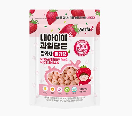 - 특징:국내산 유기농 백미,설탕에 국내산 딸기 농축액과 분말을 섞어 만든 간식