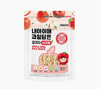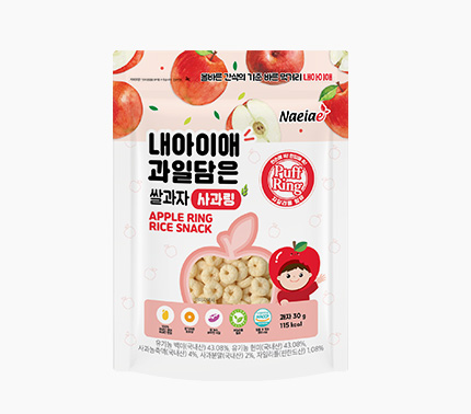 - 특징:국내산 유기농 백미,설탕에 국내산 사과 농축액과 분말을 섞어 만든 간식