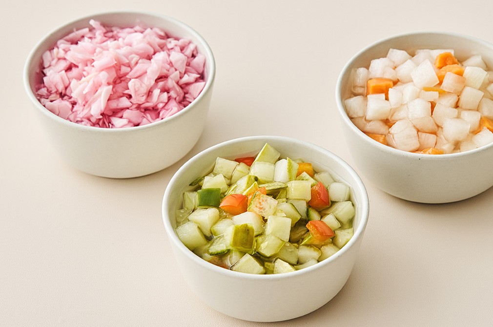 자극 없이 새콤달콤해서 아이들도 부담 없이 즐길 수 있는 순한 피클이에요.