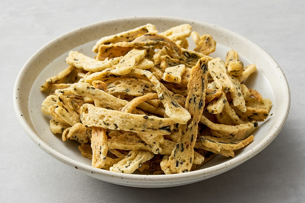 얇고 길쭉하게 썬 어묵에 고소한 김을 입혀 바삭하게 튀겨 냈어요. 어묵 특유의 감칠맛과 김의 짭짤하면서도 고소한 맛이 탁월하게 어우러지죠.
