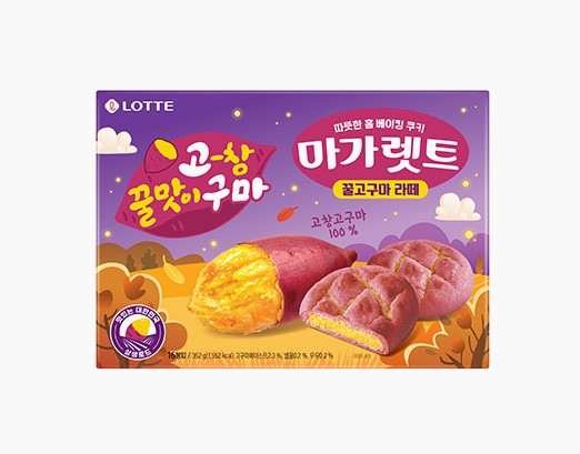 - 특징:아카시아꿀을 더해 만든 고소한 마가렛트 속에 고창산 고구마로 만든 페이스트를 더해 진한 달콤함이 매력적이에요.