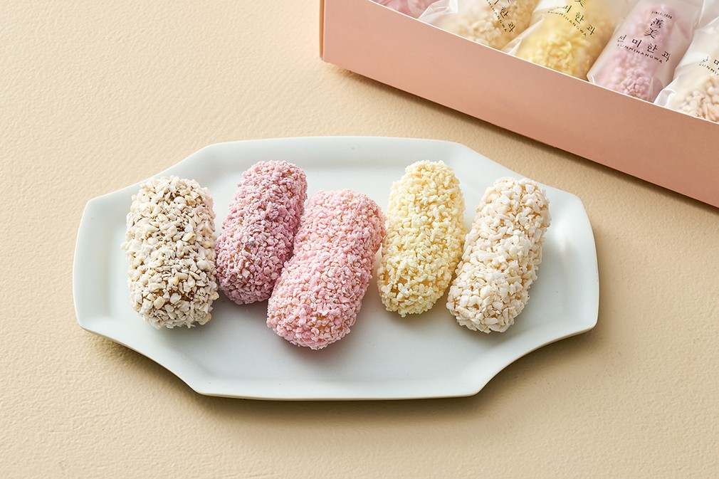 강릉 지역의 전통을 계승하며 품격 있는 한과를 선보이는 브랜드,선미한과를 소개할게요. 지금 만나볼 선물세트는 가볍고 경쾌한 식감의 유과를 다양하게 꾸려 담은 제품이에요. 수제로 만들어 투박하면서도 단정한 모양새가 매력적이죠. 백년초,호박,커피 등 5가지 맛을 하나씩 담아 다채롭게 즐길 수 있어요.