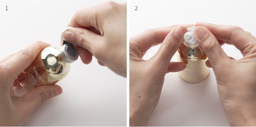 - 1.상단에 표시된 화살표 방향으로 보호캡을 들어올려 알루미늄 실링을 제거해주세요.