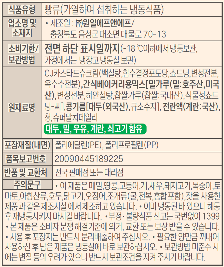 | 알레르기정보 | -대두,밀,우유,계란,쇠고기 함유 - 메밀,땅콩,고등어,게,새우,돼지고기,복숭아,토마토,아황산류,호두,닭고기,오징어,조개류(굴,전복,홍합 포함),잣을 사용하는 제조시설에서 제조 |