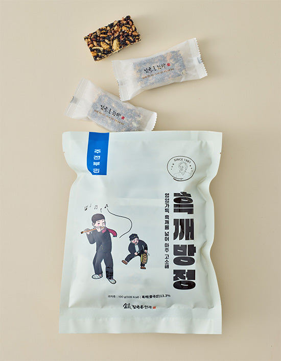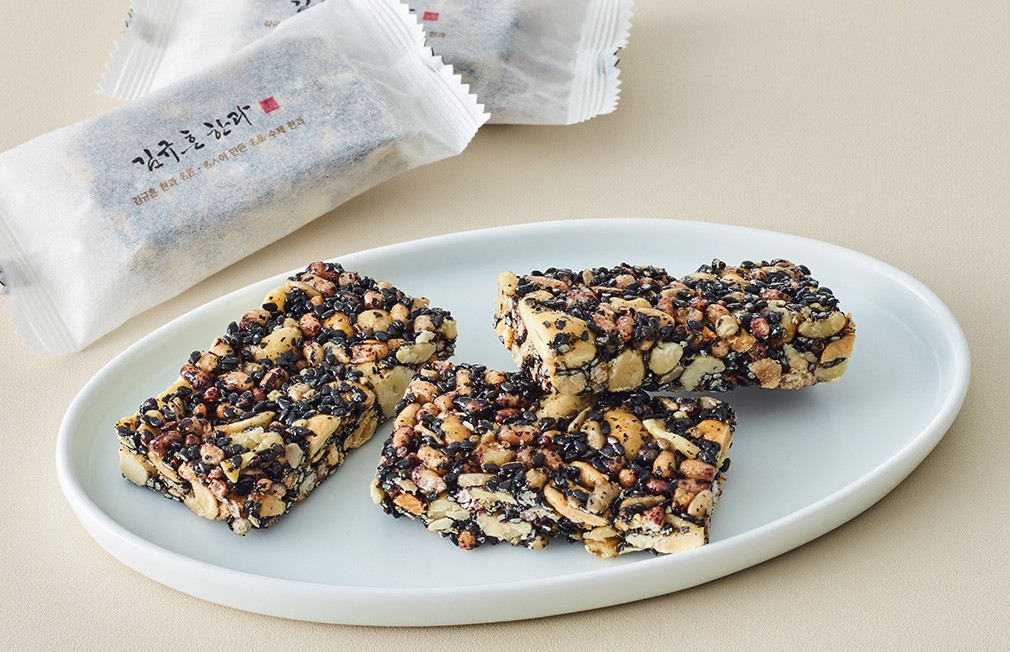 대한민국의 한과 명장 1호,김규흔 명인만의 비법을 담아 만든 흑깨방정을 소개합니다. 고소한 흑깨에 땅콩과 호두,캐슈넛 등을 더해 완성했어요. 기름에 튀기지 않고 로스팅하여 견과류의 담백한 맛을 고스란히 담았고요. 여기에 국산 쌀로 만든 조청을 코팅하여 자연스러운 단맛을 더했죠. 소담히 담아 향긋한 차나 커피를 곁들여 즐겨 보세요.