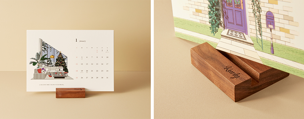 - 구성:①캘린더 본품 1개,②나무 거치대 1개