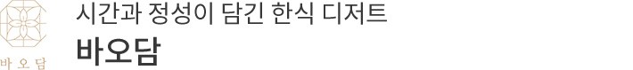 바오담은 ‘보기 좋게 맛을 담다’라는 슬로건을 내걸며 프리미엄 한식 디저트를 만드는 브랜드예요. 2011년부터 트렌디한 감각으로 세련되게 완성한 우리 간식을 선보이고 있죠. 뿐만 아니라 전통 간식을 현대적으로 재해석한 퓨전 브런치 메뉴로도 많은 사랑을 받고 있는데요. 유명 호텔에 제품을 공급하고 브랜드 관련 수상을 이어 오는 등 그 노력과 품질을 인정받으며,떡부터 한과까지 다채로운 한식 디저트의 영역을 아우르고 있습니다. 바오담은 정성을 들여 재료를 고르고,쌀을 불려서 빻고,찌고,재료를 섞는 시간이 맛을 만든다고 생각해요. 그 정성 가득한 시간이 보기 좋게 담긴 바오담의 디저트를 즐겨 보세요.