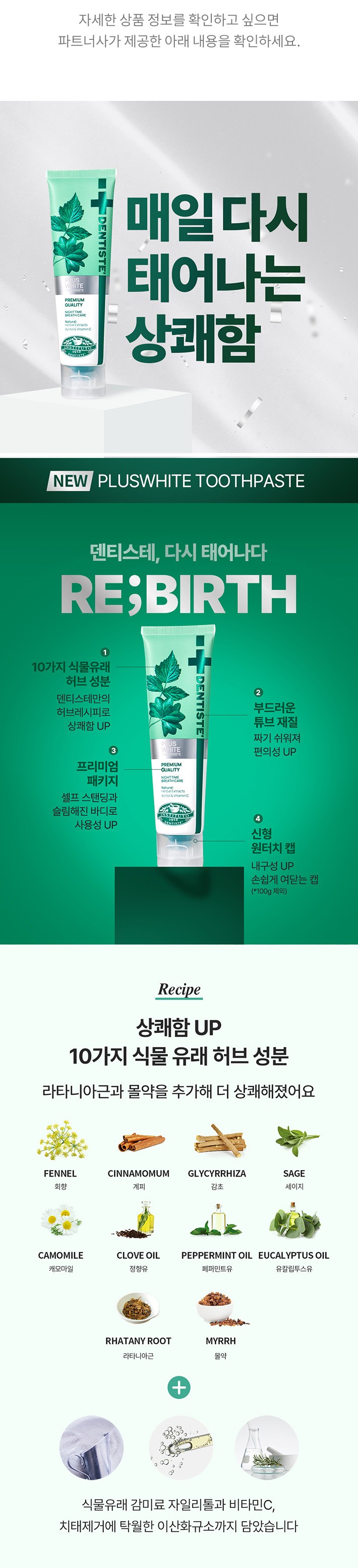 ・ 특징:산뜻한 민트향으로 구취를 개운하고 상쾌하게 제거해줍니다.