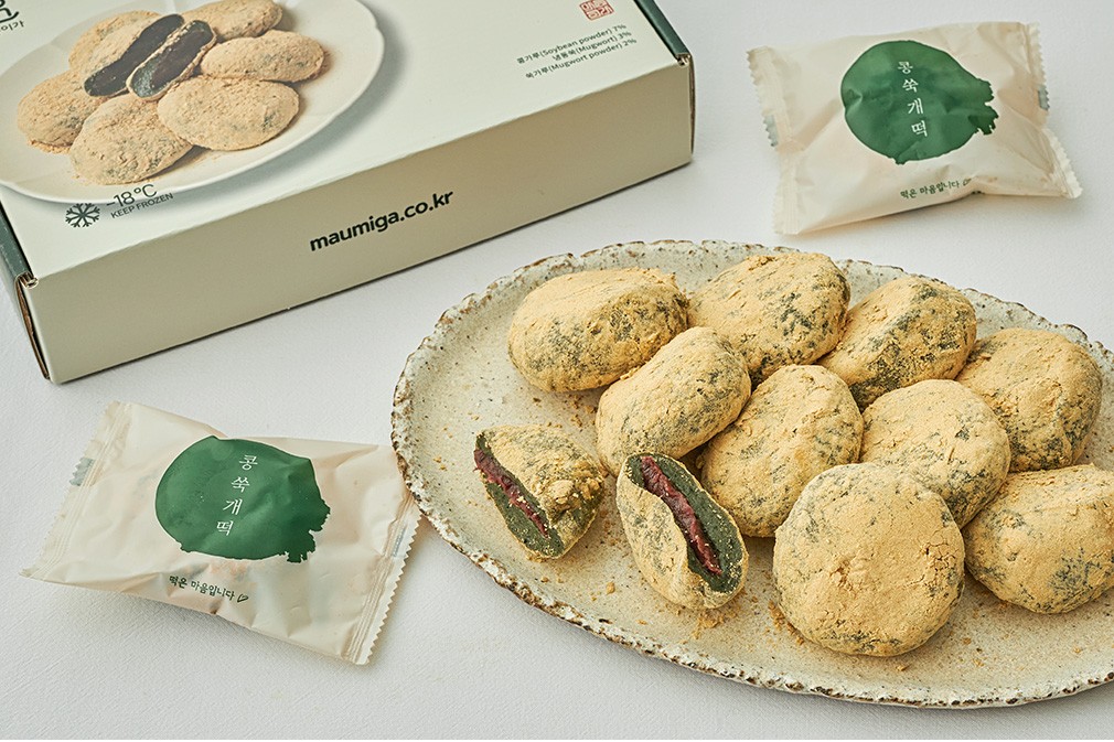 말랑말랑한 인절미를 좋아하는 분이라면 주목해주세요. 컬리는 좋은 재료로 만들어 안심하고 드실 수 있는 마음이가 콩쑥개떡을 가져왔어요. 국산 찹쌀에 냉동쑥과 쑥가루를 넣고 반죽해,쑥의 진한 빛깔과 향이 살아있어요. 향긋하고 맛있는 쑥떡 속에는 달콤한 팥앙금이 숨겨져 있죠. 그 위에 고소한 콩가루가 가득 묻어 풍미를 더합니다. 쫀득한 쑥떡과 팥 앙금,콩가루의 조합이 아주 좋아요. 동그랗고 납작한 모양의 떡의 쫄깃한 식감 사이로 씹히는 통팥 알갱이가 일품입니다. 하나의 크기가 제법 커서 한두 개만 먹어도 속이 든든해 간식은 물론,간단한 식사 대용으로도 손색없을 거예요.