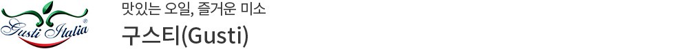구스티(Gusti)라는 이름은 맛,미각을 뜻하는 구스토(Gusto)에서 왔습니다. 구스티가 만드는 맛있는 오일을 통해 사람들을 미소 짓게 하고 싶다는 염원이 담겨있죠. 구스티는 1998년 설립자인 Mr. Francesco가 이탈리아 동남부에 위치한 아폴리아에 올리브 밭을 만든 것에서부터 시작했습니다. 올리브오일을 시작으로 아마씨 오일,해바라기씨 오일 등 다양한 식물성 오일을 생산해오고 있어요. 비옥한 토양에서 유기농법으로 키운 곡물만 골라 사용하고 각종 식품첨가물,산화방지제는 완전히 배제하는 것이 철칙이죠.