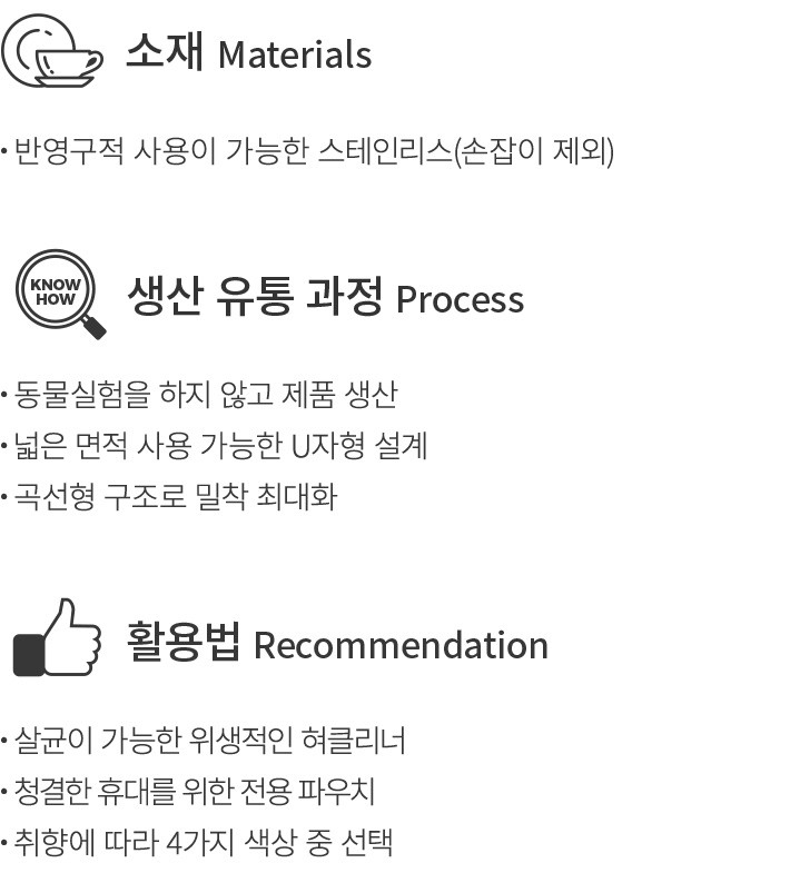 ・특징:스테인리스 혀 클리너로 유연한 U자형 구조를 가지고 있어 닦는 면적을 조절하여 이물질을 닦아낼 수 있습니다. 전용 파우치를 함께 보내드리니 청결한 휴대·보관이 가능해요.