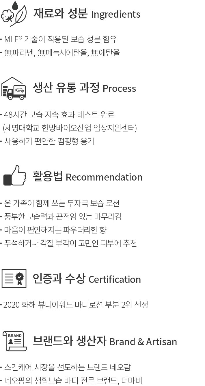 ・사용감:부드러운 타입이라 전신에 넓게 펴바르기 좋아요. 끈적이지 않으면서도 피부에 촉촉한 느낌은 남습니다.