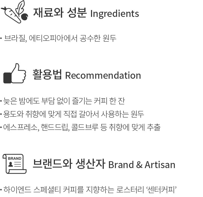 02~03. 디카페인 원두 에티오피아・선택가이드:①210g,②500g 중 선택하세요.