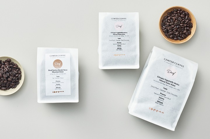 성수동을 대표하는 스페셜티 커피 전문점,센터커피가 선보이는 디카페인 원두를 만나보세요. 그윽한 풍미를 선사하는 브라질,그리고 특유의 기분 좋은 산미가 입안 가득 번지는 에티오피아 원두를 준비했는데요. 각각 마운틴과 스위스 워터 프로세스를 거쳐,수용성인 카페인만을 물에 녹여 제거했어요. 덕분에 카페인 함량은 확 줄이면서도 원두 고유의 맛과 향은 그대로 보존했답니다. 늦은 밤에도 센터커피의 디카페인 원두로 섬세한 미각을 일깨워 보세요.