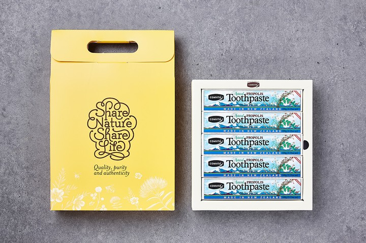 치약 세트를 무난하고 평범한 선물이라고 여겼다면,컬리가 준비한 제품을 보고 생각이 달라질 거예요. 청정 뉴질랜드에서 꿀벌이 바지런히 만든 프로폴리스 추출물을 주원료로 사용한 콤비타의 치약을 담았거든요. 프로폴리스 추출물은 구강 내에서의 항균 작용을 하는 기능성 원료로 인정받은 만큼 구강 건강을 챙기기에 그만이에요. 양치를 산뜻하게 끝낼 수 있도록 티트리,페퍼민트,스피아민트 오일도 함유되어 있답니다. 이제 치약도 남다른 센스를 담아 선물해보세요.