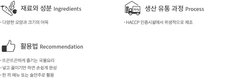 ・특징:다양한 모양과 크기의 어묵,육수용 분말 스프를 함께 담아 간편하게 끓여 먹을 수 있는 밀키트 제품이에요.