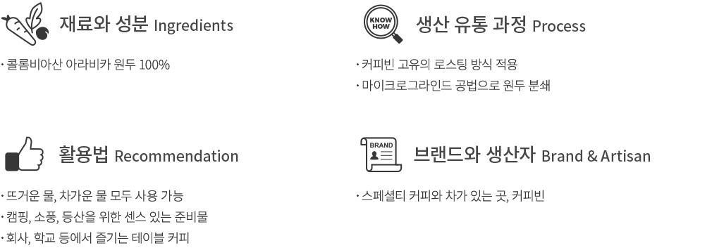 01~02. 콜롬비아 아메리카노 2종・선택 가이드:①20입(1.6g X 20개입),②50입(1.6g X 50개입) 중 선택하세요.