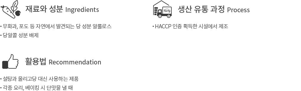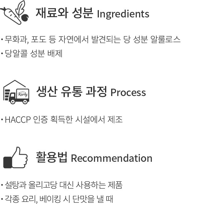 ・특징:설탕을 대신해 칼로리 부담 없이 다채롭게 활용할 수 있는 제품입니다.
