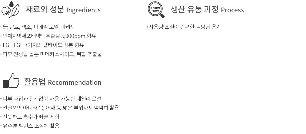 ・ 사용감:빠르게 흡수되어 산뜻하게 마무리돼요. 당김 없이 촉촉함이 오래 유지됩니다.