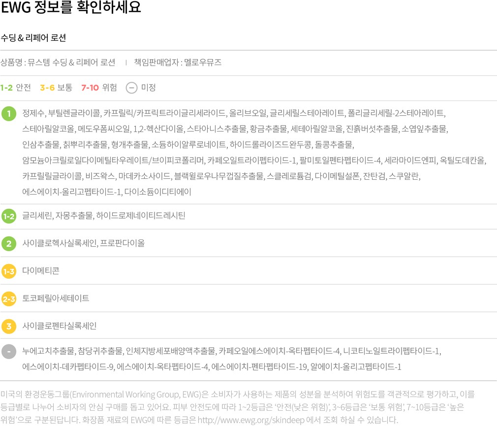 컬리는 EWG로부터 보통,위험 등급을 받은 성분이라 하더라도 숨기지 않고 정직하게 공개합니다. 더불어 우려되는 성분에 대한 정보를 함께 제공해 드리오니 구입 전 반드시 확인해 주세요.