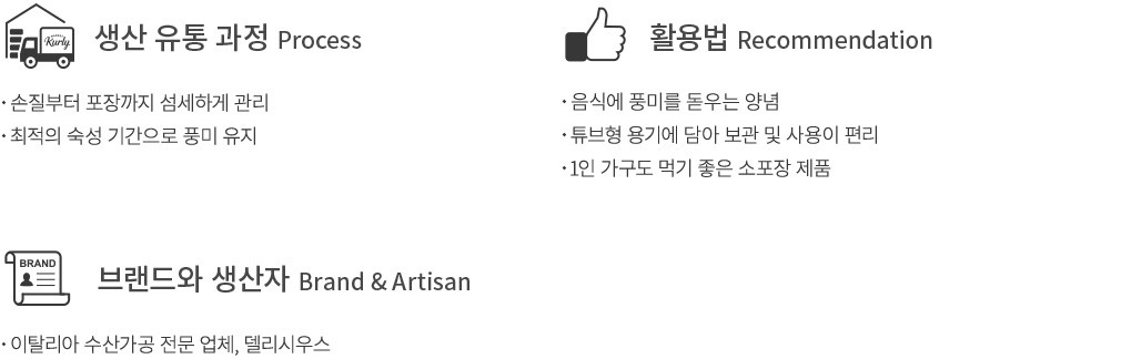 ・원재료:멸치 87.5%,올리브유 12%,정제소금,정향나무 꽃봉오리
