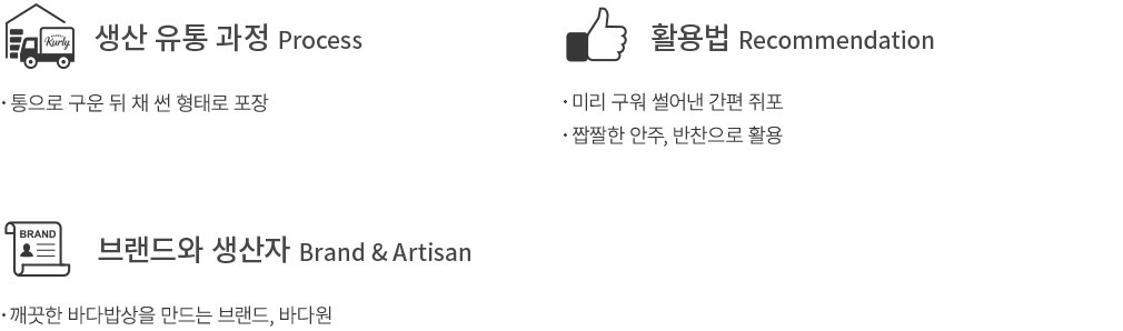 ?활용팁:에어프라이어나 팬에서 살짝 구워 드셔보세요. 한층 고소한 풍미가 살아납니다. 청양고추를 송송 썰어 넣은 마요네즈에 콕 찍어 드셔도 좋아요.