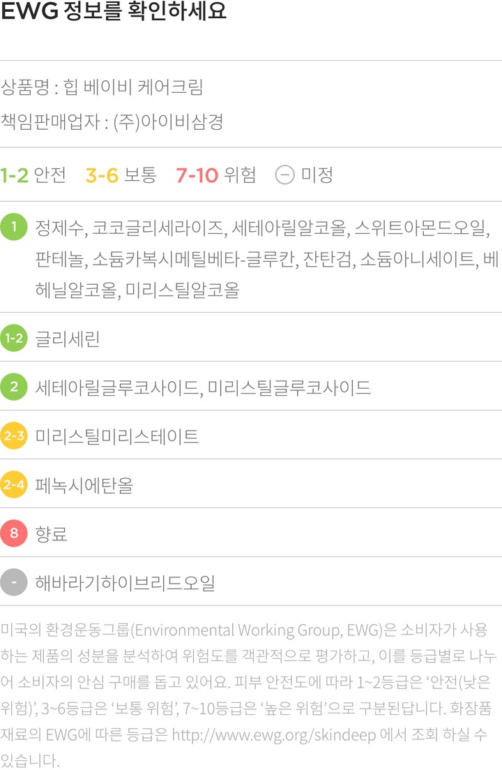 컬리는 EWG로부터 보통,위험 등급을 받은 성분이라 하더라도 숨기지 않고 정직하게 공개합니다. 더불어 우려되는 성분에 대한 정보를 함께 제공해 드리오니 구입 전 반드시 확인해 주세요.