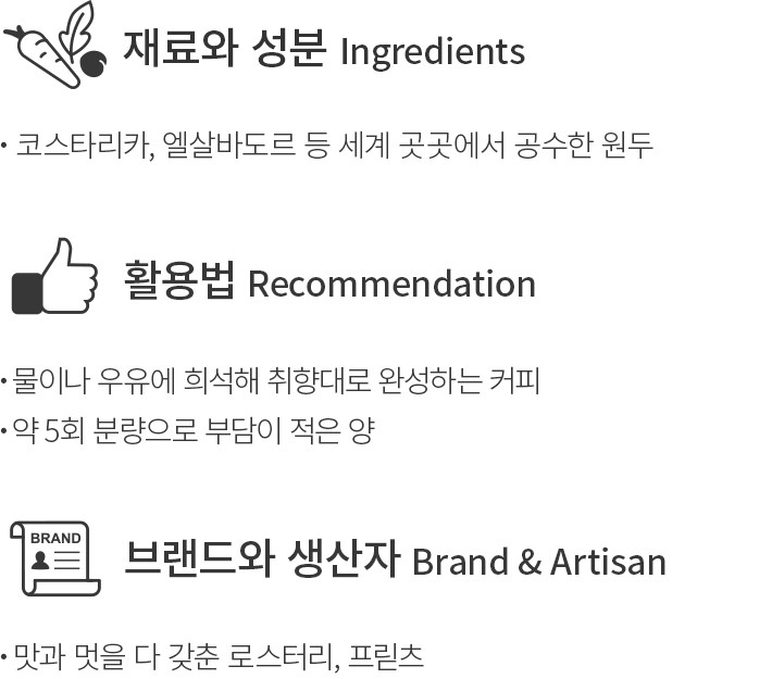 ・원산지:코스타리카 40%,인도 35%,과테말라 25%