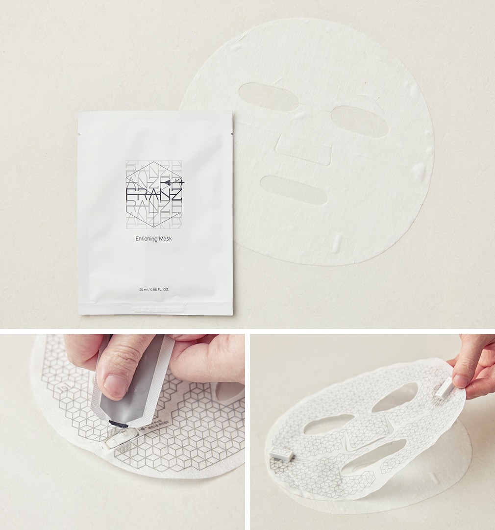 ?저녁:세안 후 프란츠 앰플을 바르고 마스크팩을 올려 영양분을 천천히 흡수시켜보세요. 함께 제공하는 제트플러스 미세전류팩을 활용하면 더욱 좋습니다.